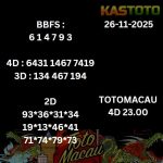 PREDIKSI TOGEL TAIWAN KASTOTO 26 NOVEMBER 2025 Togel taiwan telah menjadi permainan judi yang paling di minati di kalangan masyarakat Indonesia. Setiap harinya, ribuan pemain berusaha memprediksi angka-angka yang akan keluar sebagai pemenang pada pengundian berikutnya. Dengan munculnya platform online seperti Kastoto, akses ke permainan ini semakin mudah dan nyaman bagi para penggemar togel. Kastoto […]