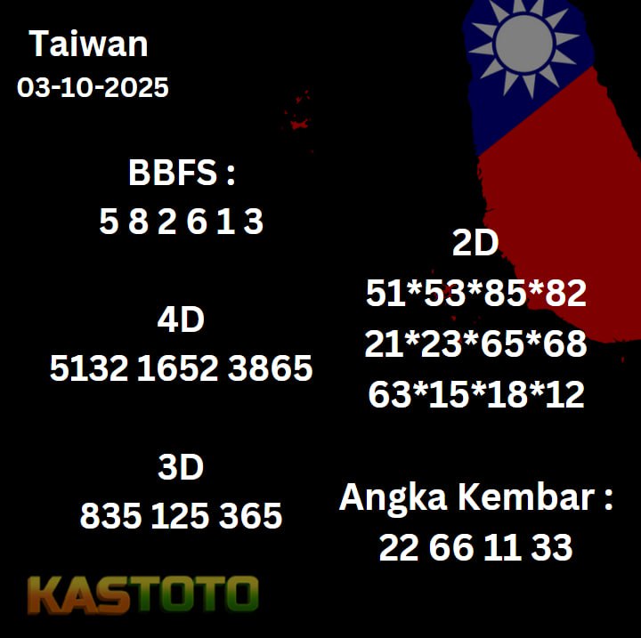PREDIKSI TOGEL TAIWAN KASTOTO 03 OKTOBER 2025