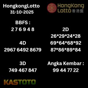 PREDIKSI TOGEL Hongkong KASTOTO 31 OKTOBER 2025  Togel HongkongLotto telah menjadi permainan judi yang paling di minati di kalangan masyarakat Indonesia. Setiap harinya, ribuan pemain berusaha memprediksi angka-angka yang akan keluar sebagai pemenang pada pengundian berikutnya. Dengan munculnya platform online seperti Kastoto, akses ke permainan ini semakin mudah dan nyaman bagi para penggemar togel. Kastoto menjadi momen yang di nantikan oleh banyak pemain togel KASTOTO , termasuk yang bermain melalui platform Kastoto. Prediksi ini telah menjadi topik hangat di berbagai komunitas judi online, dengan para pemain berbagi informasi, strategi, dan pandangan mereka tentang kemungkinan nomor yang akan keluar.