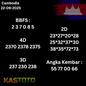 PREDIKSI TOGEL CAMBODIA KASTOTO 22 SEPTEMBER 2025 masyarakat Indonesia. Setiap harinya, ribuan pemain berusaha memprediksi angka-angka yang akan keluar sebagai pemenang pada pengundian berikutnya. Dengan munculnya platform online seperti Kastoto, akses ke permainan ini semakin mudah dan nyaman bagi para penggemar togel. Kastoto menjadi momen yang dinantikan oleh banyak pemain togel CAMBODIA, termasuk yang bermain melalui platform Kastoto. Prediksi ini telah menjadi topik hangat di berbagai komunitas judi online, dengan para pemain berbagi informasi, strategi, dan pandangan mereka tentang kemungkinan nomor yang akan keluar.