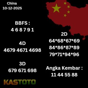 PREDIKSI TOGEL CHINA KASTOTO 10 DESEMBER 2025 merupakan togel china permainan sangat populer di berbagai negara, termasuk Indonesia. Setiap harinya, ribuan orang memasang taruhan dan mencoba meramalkan angka-angka yang akan keluar pada hasil undian berikutnya. menjadi momen penting bagi para pecinta togel, untuk hasil undian Togel China Kastoto menjadi sorotan utama.