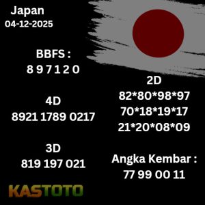 PREDIKSI TOGEL JAPAN KASTOTO 04 DESEMBER 2025 merupakan Togel Japan yang populer di berbagai negara, termasuk Indonesia. Setiap harinya, ribuan orang memasang taruhan dan mencoba meramalkan angka-angka yang akan keluar pada hasil undian berikutnya. menjadi penting bagi para pecinta togel, di mana untuk hasil undian Togel Japan Kastoto menjadi sorotan utama.
