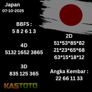 PREDIKSI TOGEL JAPAN KASTOTO 07 OKTOBER 2025 merupakan Togel Japan yang populer di berbagai negara, termasuk Indonesia. Setiap harinya, ribuan orang memasang taruhan dan mencoba meramalkan angka-angka yang akan keluar pada hasil undian berikutnya. menjadi penting bagi para pecinta togel, di mana untuk hasil undian Togel Japan Kastoto menjadi sorotan utama.