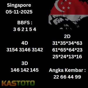 PREDIKSI TOGEL SINGAPORE KASTOTO hari ini 05 NOVEMBER 01 NOVEMBER 2025 merupakan togel singapore permainan sangat populer di berbagai negara, termasuk Indonesia. Setiap harinya, ribuan orang memasang taruhan dan mencoba meramalkan angka-angka yang akan keluar pada hasil undian berikutnya. menjadi momen penting bagi para pecinta togel, untuk hasil undian Kastoto menjadi sorotan utama.