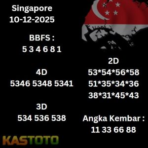 PREDIKSI TOGEL SINGAPORE KASTOTO hari ini 10 DESENBER  2025 merupakan togel singapore permainan sangat populer di berbagai negara, termasuk Indonesia. Setiap harinya, ribuan orang memasang taruhan dan mencoba meramalkan angka-angka yang akan keluar pada hasil undian berikutnya. menjadi momen penting bagi para pecinta togel, untuk hasil undian Kastoto menjadi sorotan utama.