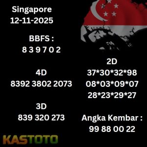 PREDIKSI TOGEL SINGAPORE KASTOTO hari ini 12 NOVEMBER 2025 merupakan togel singapore permainan sangat populer di berbagai negara, termasuk Indonesia. Setiap harinya, ribuan orang memasang taruhan dan mencoba meramalkan angka-angka yang akan keluar pada hasil undian berikutnya. menjadi momen penting bagi para pecinta togel, untuk hasil undian Kastoto menjadi sorotan utama.