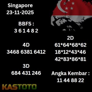 PREDIKSI TOGEL SINGAPORE KASTOTO hari ini 23 NOVEMBER 2025 merupakan togel singapore permainan sangat populer di berbagai negara, termasuk Indonesia. Setiap harinya, ribuan orang memasang taruhan dan mencoba meramalkan angka-angka yang akan keluar pada hasil undian berikutnya. menjadi momen penting bagi para pecinta togel, untuk hasil undian Kastoto menjadi sorotan utama.