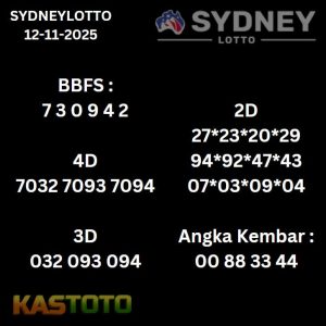 PREDIKSI TOGEL SYDNEY KASTOTO 12 NOVEMBER 2025 Sydney telah menjadi permainan judi yang paling diminati di kalangan masyarakat Indonesia. Setiap harinya, ribuan pemain berusaha memprediksi angka-angka yang akan keluar sebagai pemenang pada pengundian berikutnya. Dengan munculnya platform online seperti Kastoto, akses ke permainan ini semakin mudah dan nyaman bagi para penggemar togel. Kastoto menjadi momen yang dinantikan oleh banyak pemain togel Sydney, termasuk yang bermain melalui platform Kastoto. Prediksi ini telah menjadi topik hangat di berbagai komunitas judi online, dengan para pemain berbagi informasi, strategi, dan pandangan mereka tentang kemungkinan nomor yang akan keluar.
