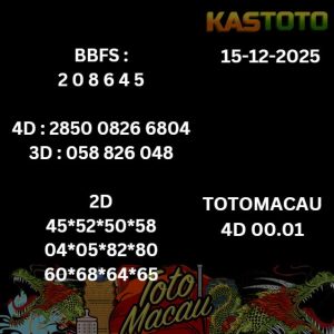 TOTO Macau Kastoto jam 00.01 hari ini, tanggal 15 DESEMBER 2025 , menjadi topik hangat bagi para pecinta togel. Meskipun demikian penting untuk diingat bahwa TOTO Macau adalah permainan yang mengandalkan keberuntungan, dan prediksi hanya