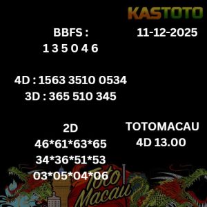 TOTO Macau Kastoto jam 13.00 hari ini, tanggal 11 DESEMBER 2025 , menjadi topik hangat bagi para pecinta togel. Meskipun demikian penting untuk diingat bahwa TOTO Macau adalah permainan yang mengandalkan keberuntungan, dan prediksi hanya perkiraa