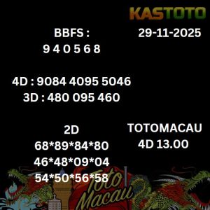 TOTO Macau Kastoto jam 13.00 hari ini, tanggal 29 NOVEMBER 2025 , menjadi topik hangat bagi para pecinta togel. Meskipun demikian penting untuk diingat bahwa TOTO Macau adalah permainan yang mengandalkan keberuntungan, dan prediksi hanya perkiraa