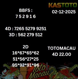 TOTO Macau Kastoto jam 22.00 hari ini, tanggal 02 DESEMBER 2025, menjadi topik hangat bagi para pecinta togel. Meskipun demikian penting untuk diingat bahwa TOTO Macau adalah permainan yang mengandalkan keberuntungan, dan prediksi hanya perkiraa