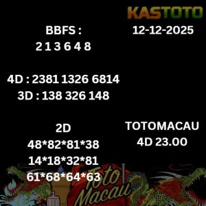 TOTO Macau Kastoto jam 23.00 hari ini, tanggal 12 DESEMBER 2025i , menjadi topik hangat bagi para pecinta togel. Meskipun demikian penting untuk diingat bahwa TOTO Macau adalah permainan yang mengandalkan keberuntungan, dan prediksi hanya perkiraa