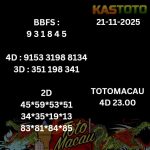 PREDIKSI TOTO MACAU Jam 23.00 Hari Ini 21 NOVEMBER 2025 merupakan Togel TOTO Macau permainan yang populer di Indonesia. terus menarik minat para pemain untuk meraih keberuntungan. Setiap hari banyak orang memasang taruhan dan berharap menebak angka-angka yang akan keluar pada hasil undian berikutnya. Hari ini, pada tanggal 21 NOVEMBER Ini 2025 , undian TOTO […]
